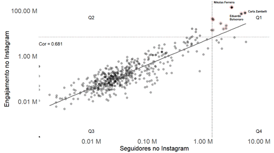 Gráfico 1 – Correlação e quadrantes de engajamento e seguidores no Instagram